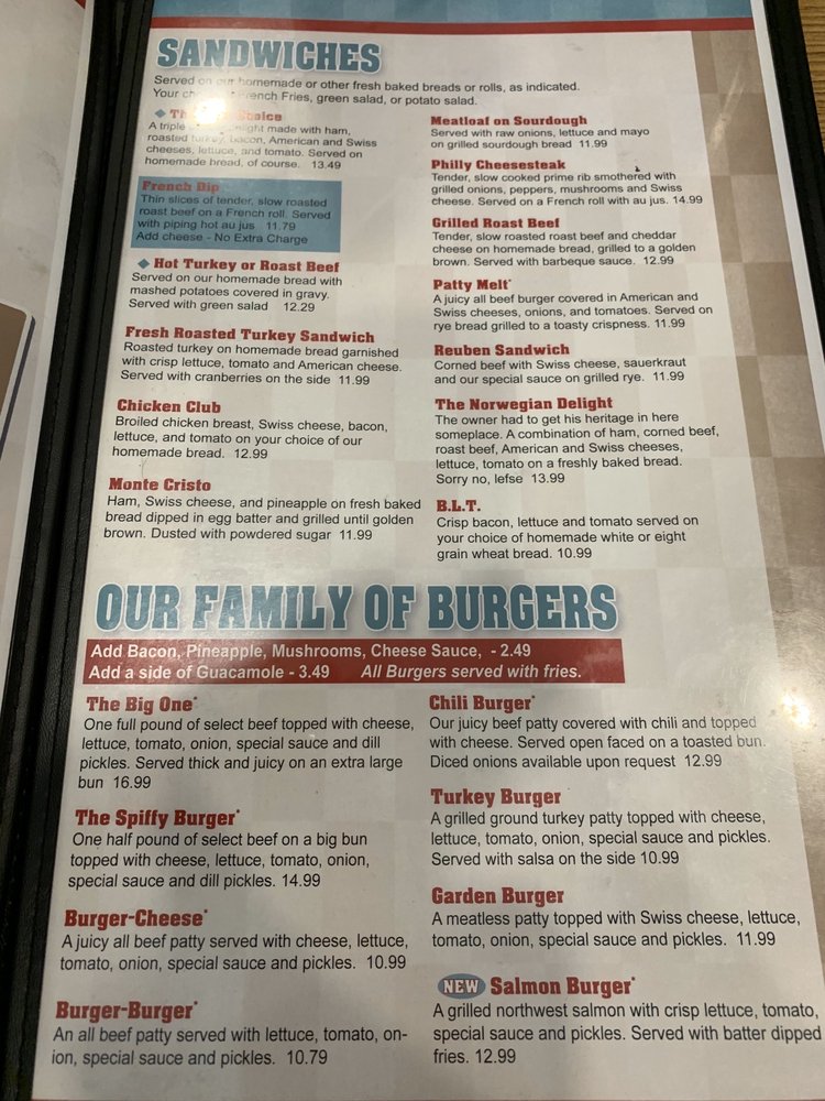 Introducing the menu at Spiffy Dine In Drive In, located at 104 Westlake Ave, Morton, WA, is a delightful journey for any food lover, particularly for those who cherish American breakfast and brunch. This cozy eatery is renowned for its extensive selection of scrumptious burgers, featuring options like The Big One—a hefty pound of select beef—and the Spiffy Burger, a satisfying half-pound delight. For lighter appetites, offerings such as chicken strips, petite top sirloin, and succulent salmon burgers appeal perfectly.